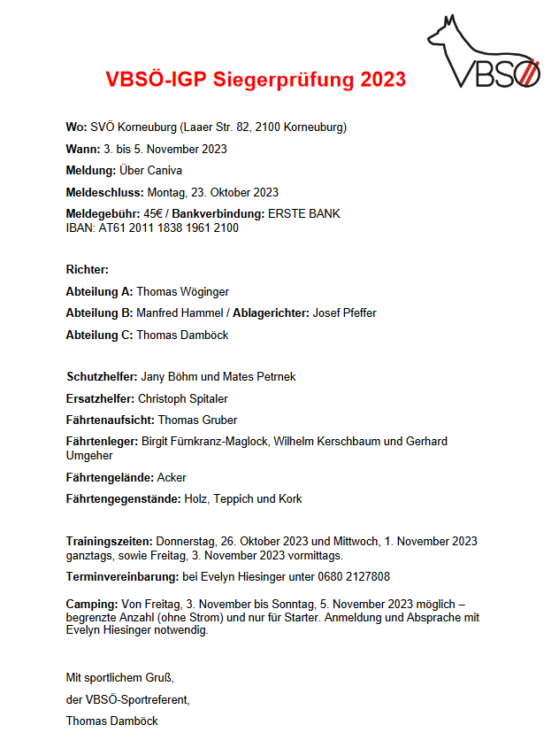 VBSÖ BELGIERSIEGERPRÜFUNG 2023 IGP 03. - 05.11.2023